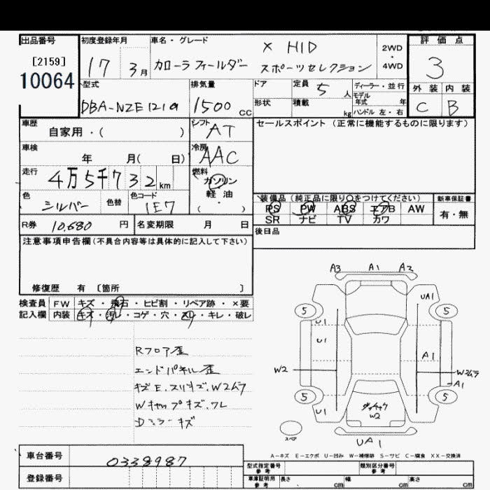 TOYOTA COROLLA FIELDER - лот 10064