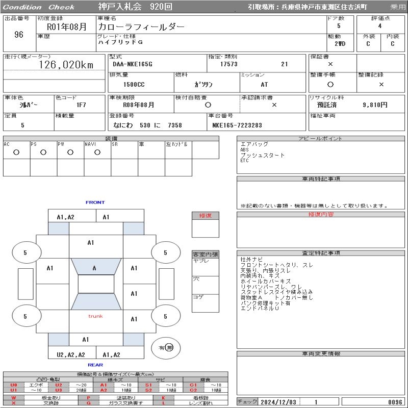 TOYOTA COROLLA FIELDER - лот 96