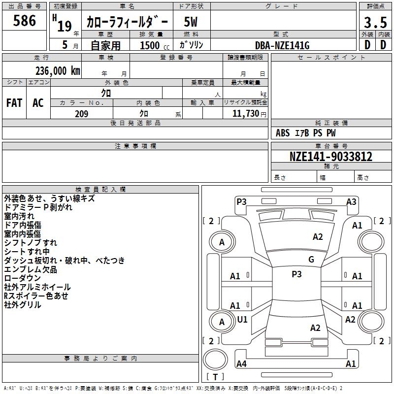 TOYOTA COROLLA FIELDER - лот 586