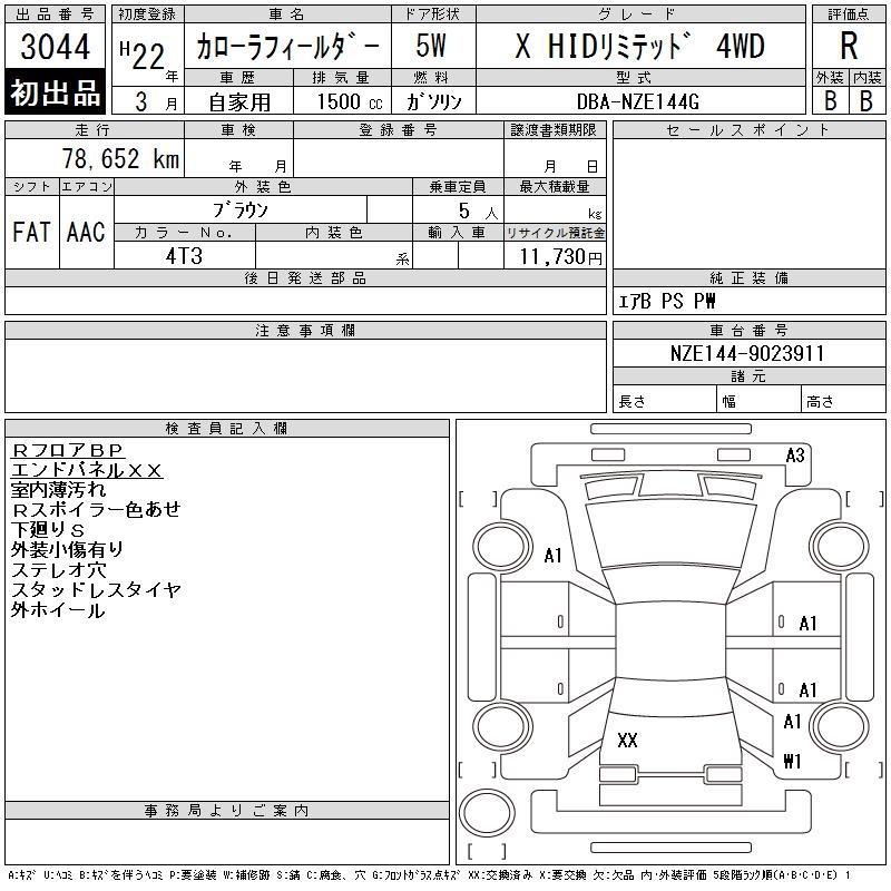 TOYOTA COROLLA FIELDER - лот 3044