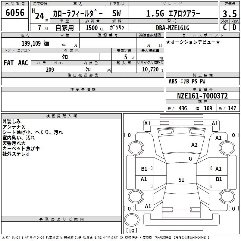 TOYOTA COROLLA FIELDER - лот 6056
