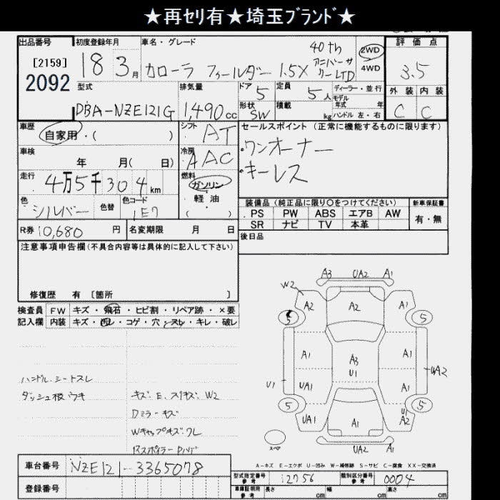 TOYOTA COROLLA FIELDER - лот 2092
