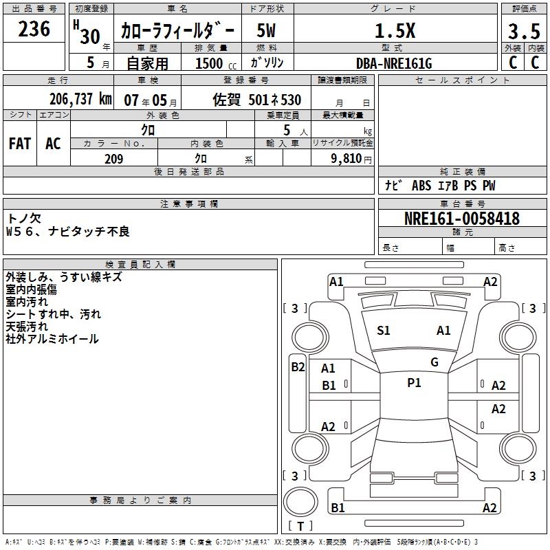 TOYOTA COROLLA FIELDER - лот 236