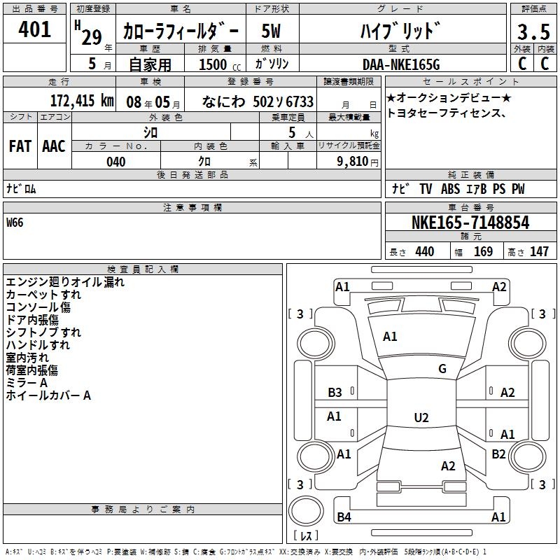 TOYOTA COROLLA FIELDER - лот 401