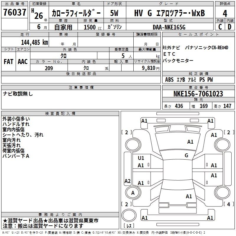TOYOTA COROLLA FIELDER - лот 76037