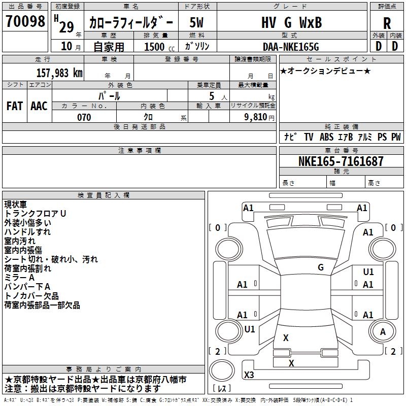 TOYOTA COROLLA FIELDER - лот 70098