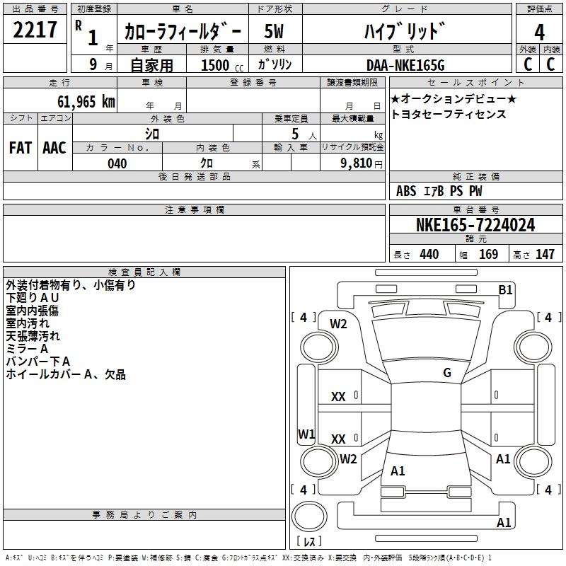 TOYOTA COROLLA FIELDER - лот 2217