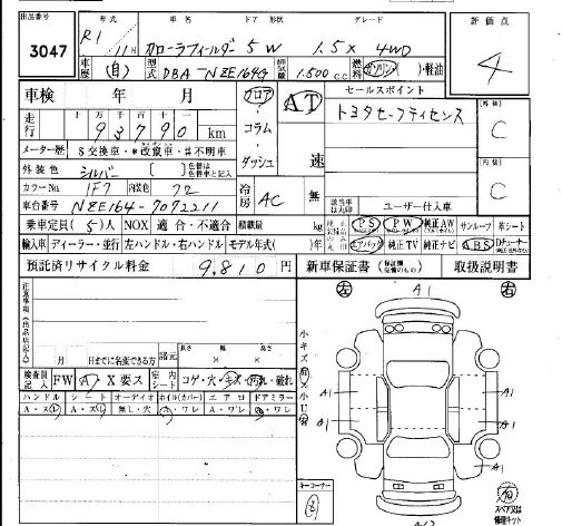 TOYOTA COROLLA FIELDER - лот 3047