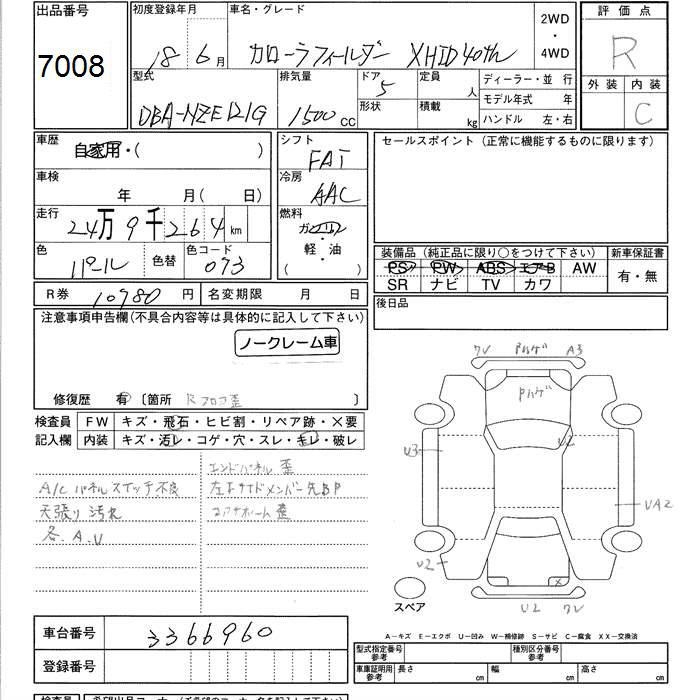 TOYOTA COROLLA FIELDER - лот 7008
