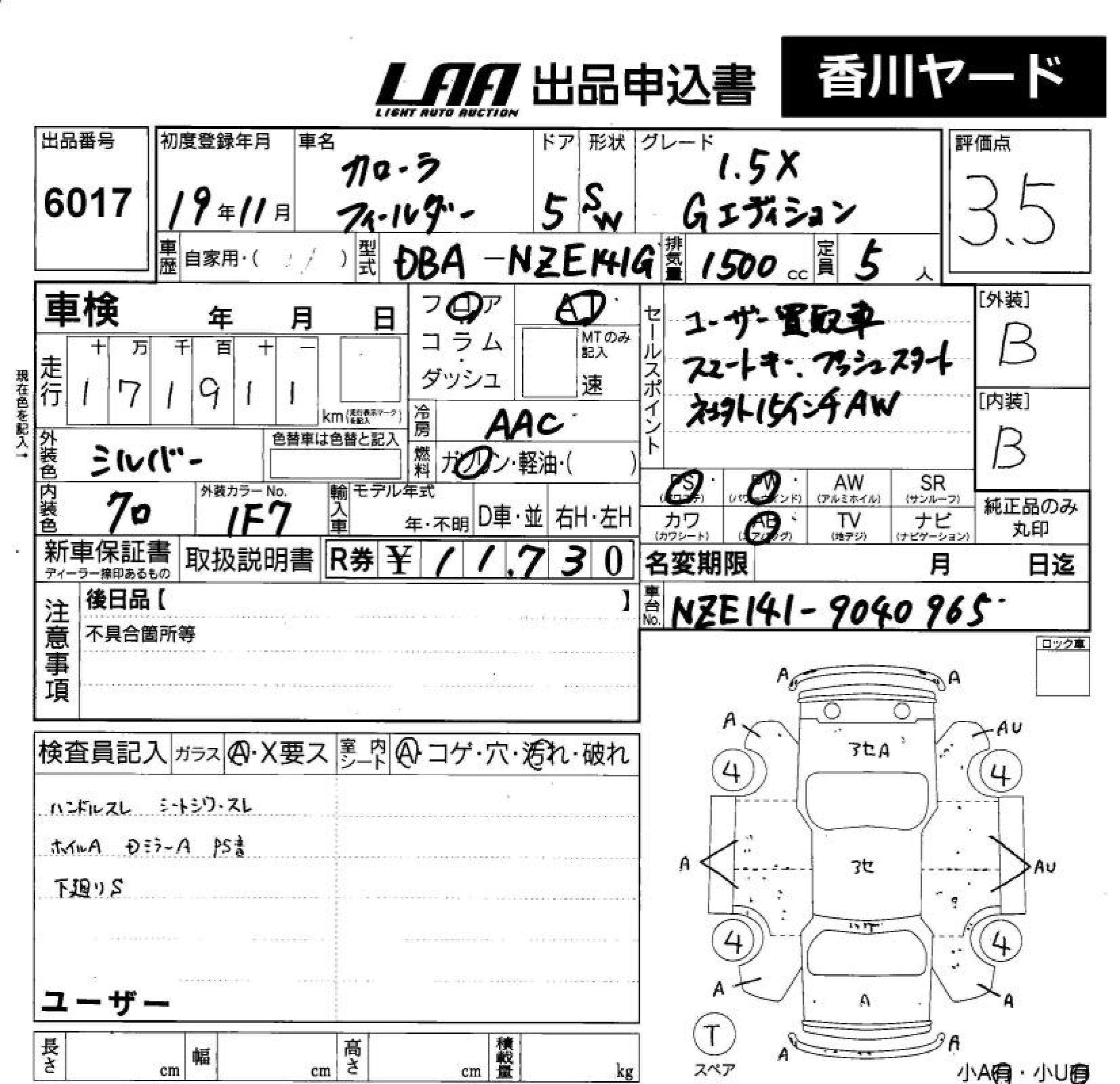 TOYOTA COROLLA FIELDER - лот 6017