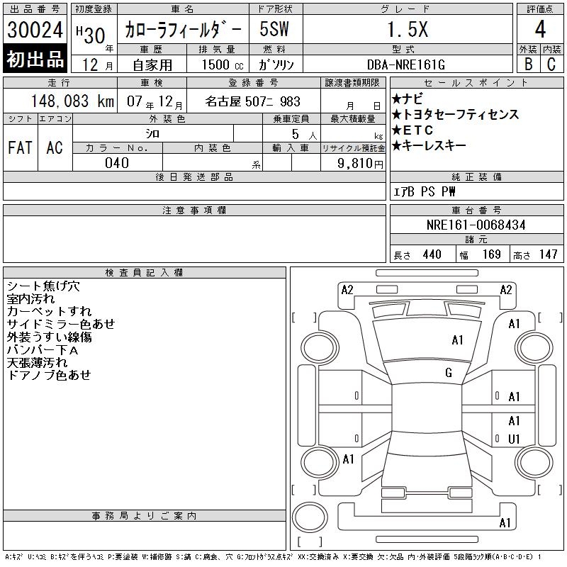 TOYOTA COROLLA FIELDER - лот 30024