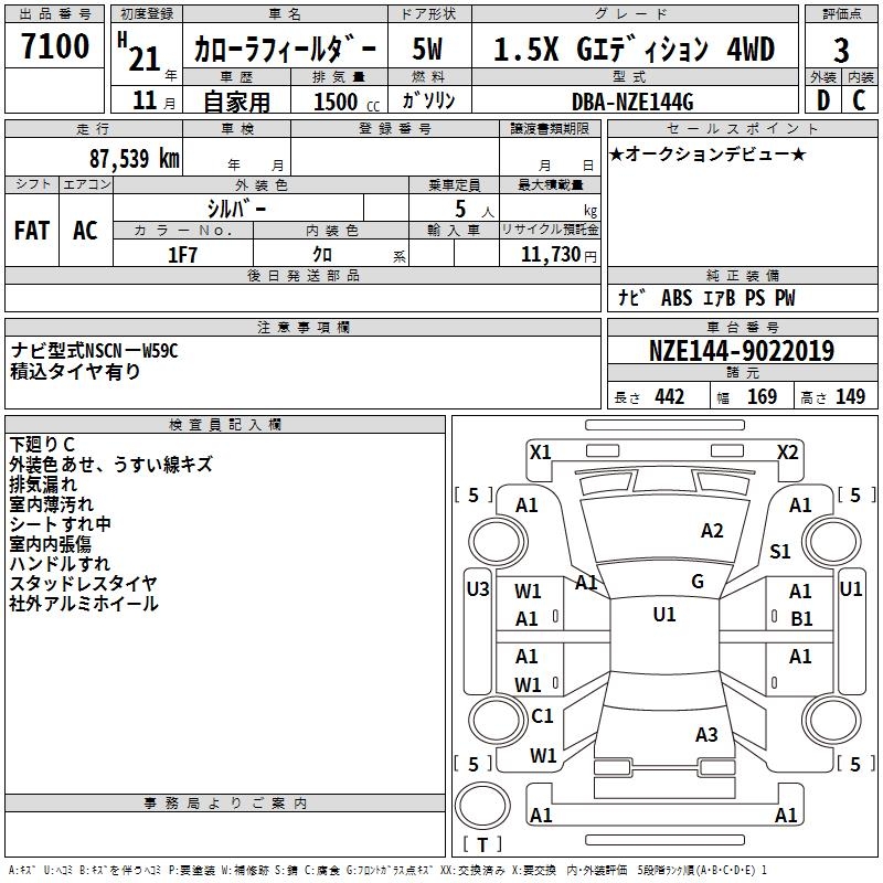 TOYOTA COROLLA FIELDER - лот 7100