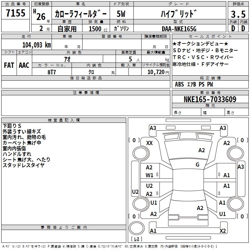 TOYOTA COROLLA FIELDER - лот 7155