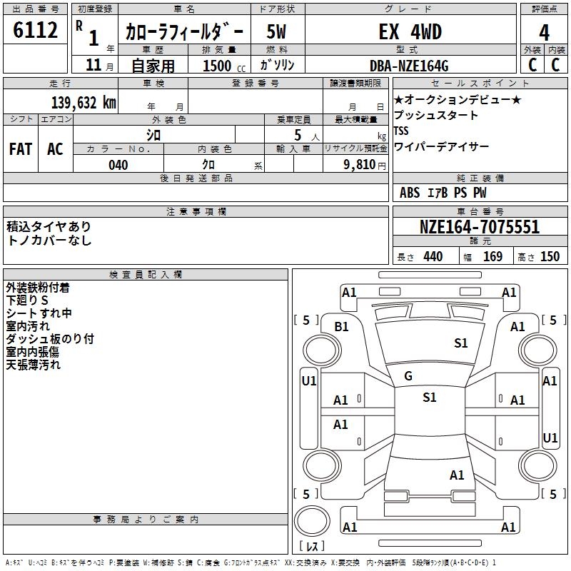 TOYOTA COROLLA FIELDER - лот 6112