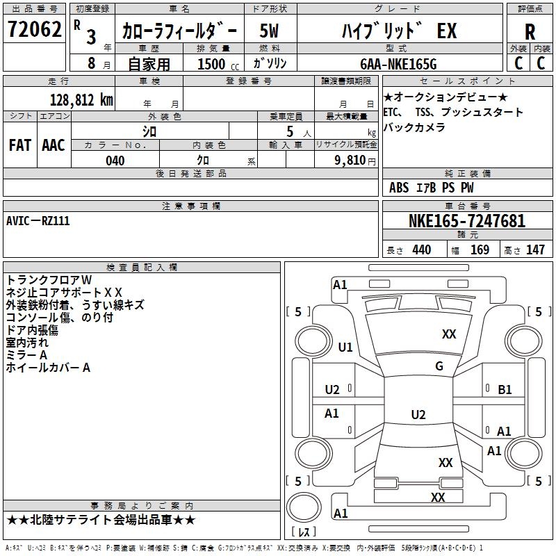 TOYOTA COROLLA FIELDER - лот 72062