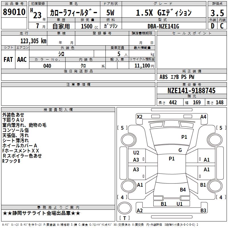 TOYOTA COROLLA FIELDER - лот 89010