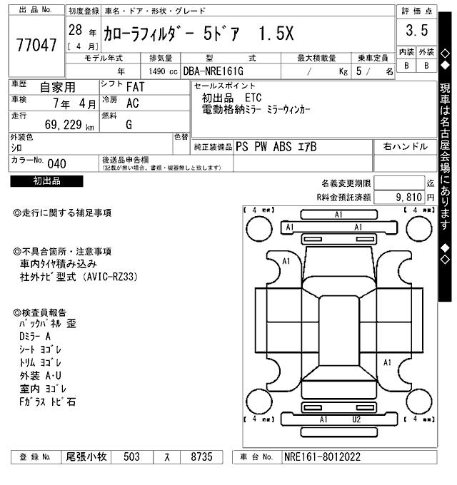 TOYOTA COROLLA FIELDER - лот 77047