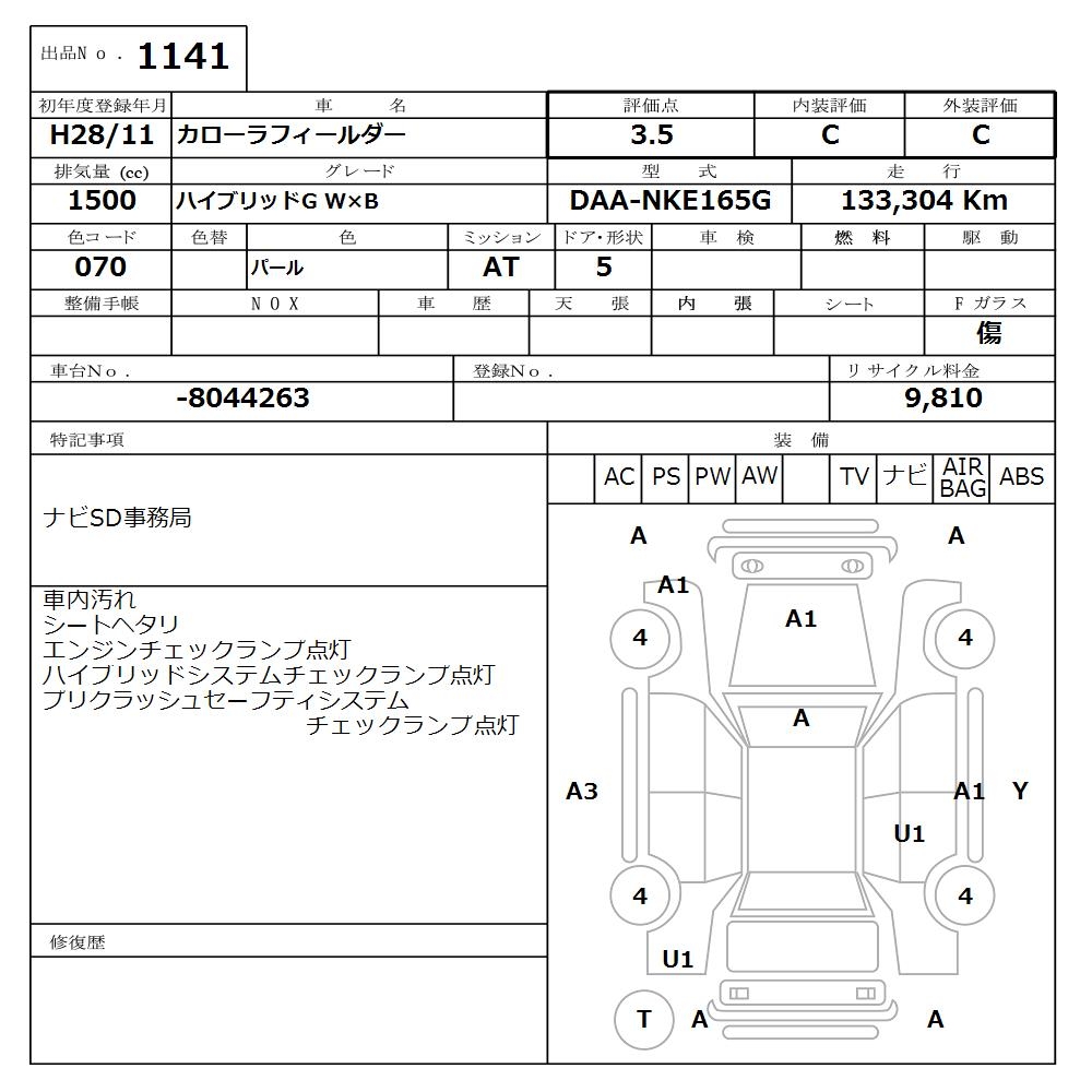 TOYOTA COROLLA FIELDER - лот 1141