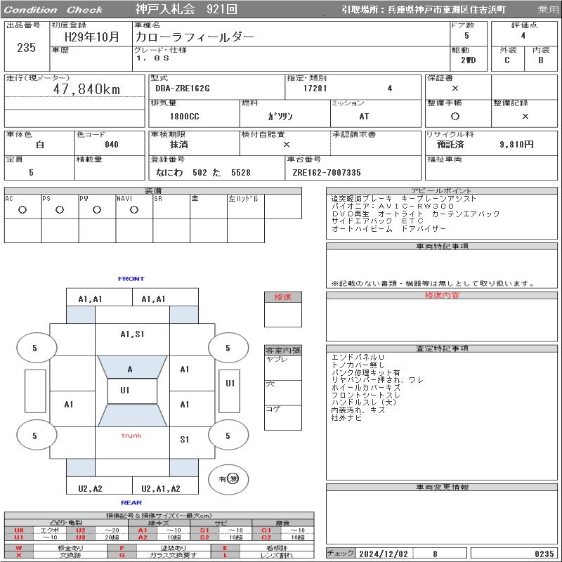 TOYOTA COROLLA FIELDER - лот 235