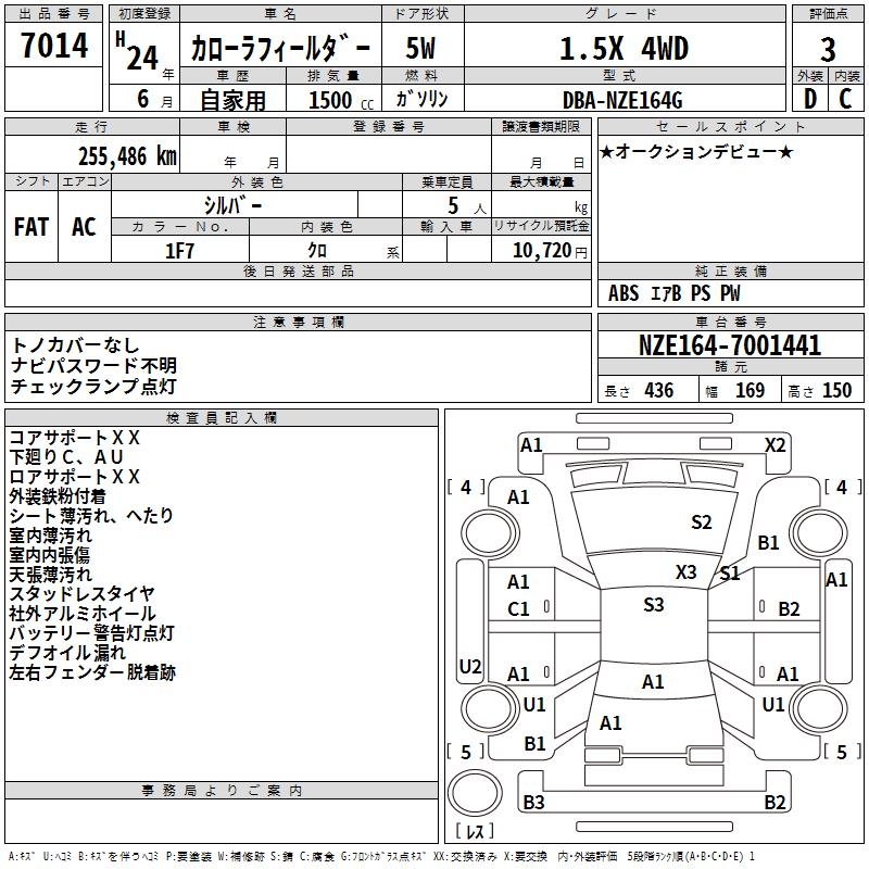TOYOTA COROLLA FIELDER - лот 7014
