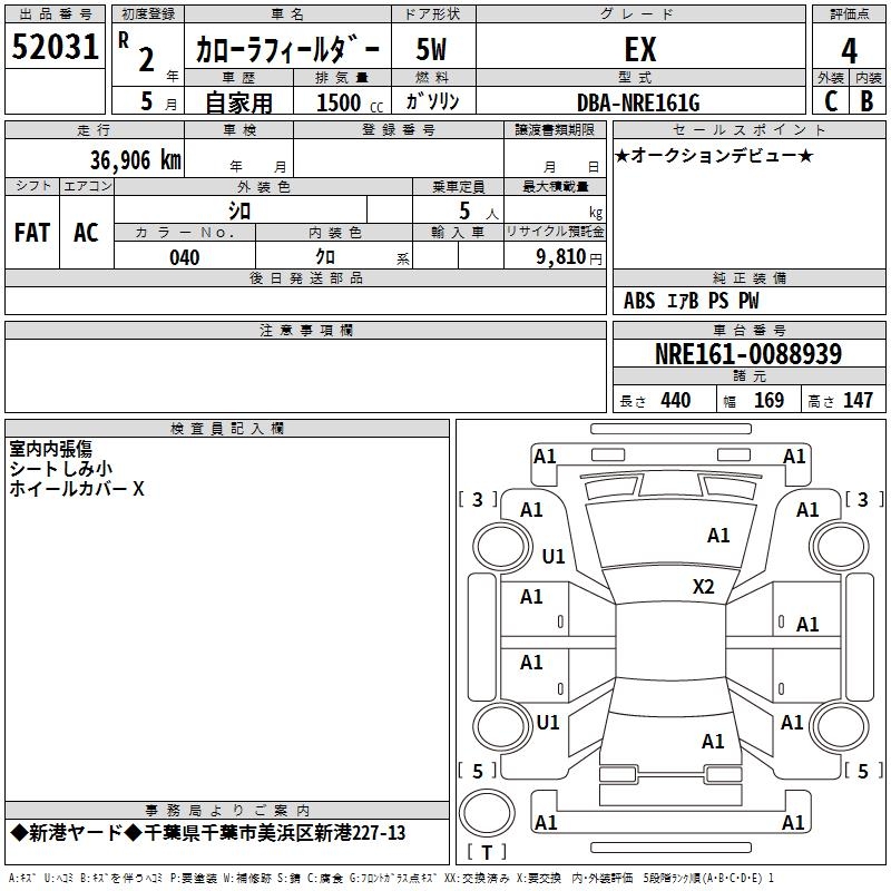 TOYOTA COROLLA FIELDER - лот 52031