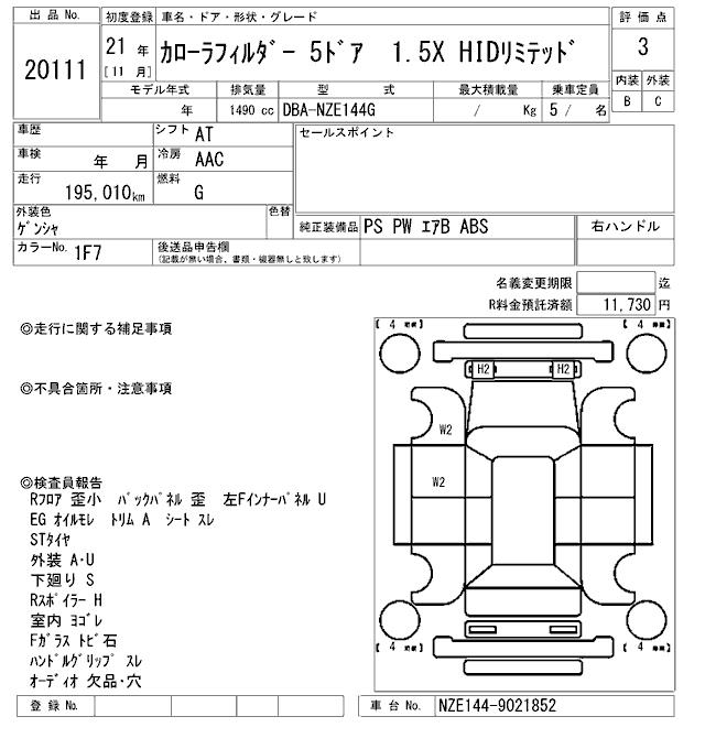 TOYOTA COROLLA FIELDER - лот 20111