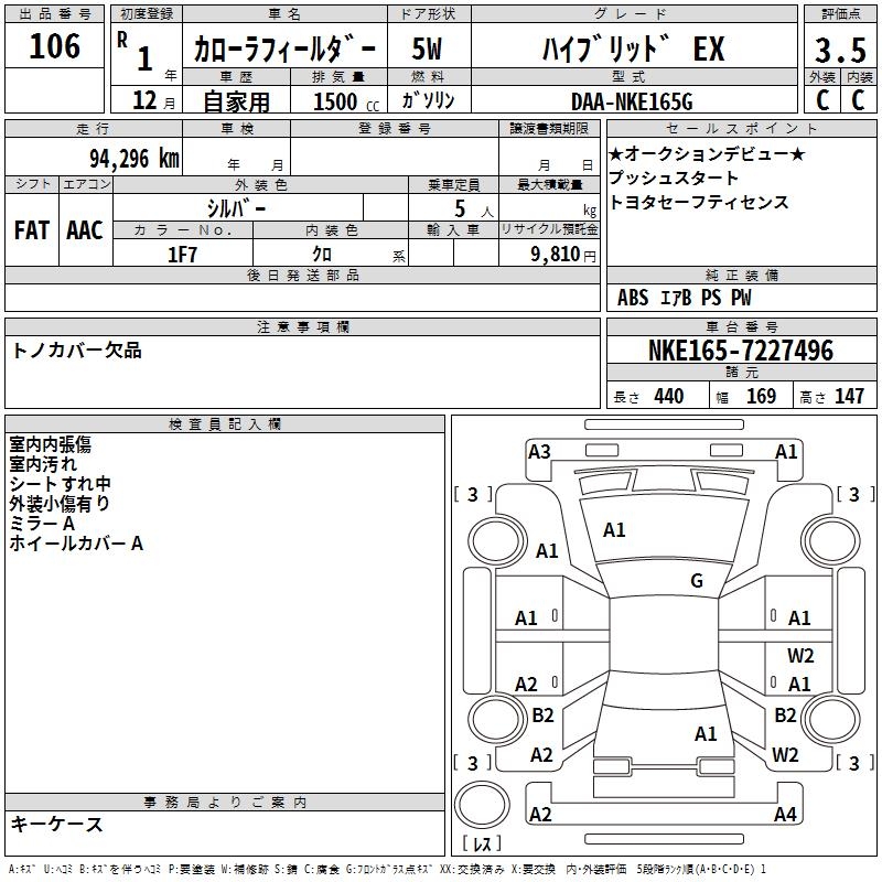 TOYOTA COROLLA FIELDER - лот 106