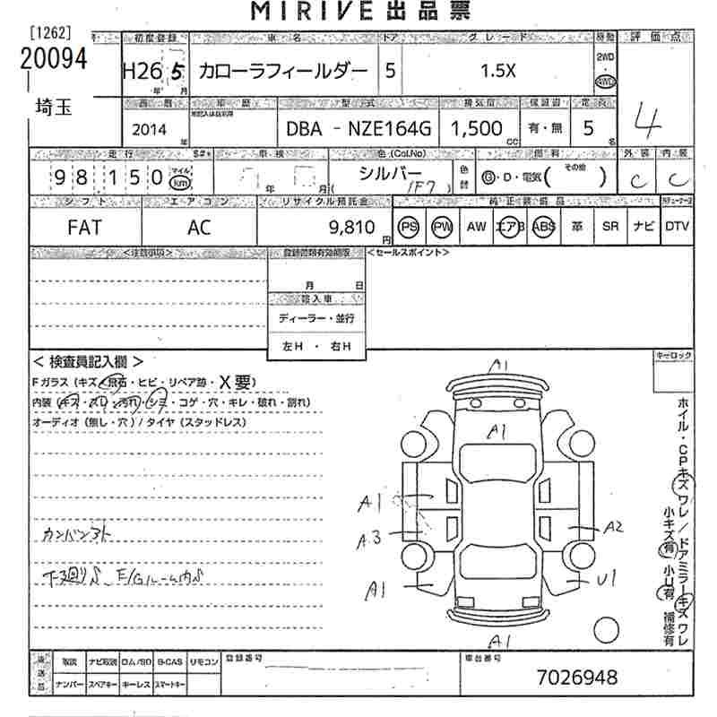 TOYOTA COROLLA FIELDER - лот 20094