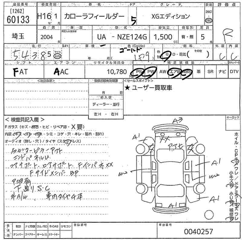 TOYOTA COROLLA FIELDER - лот 60133