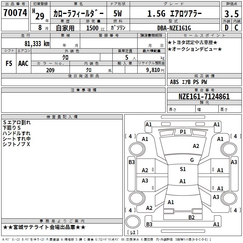 TOYOTA COROLLA FIELDER - лот 70074