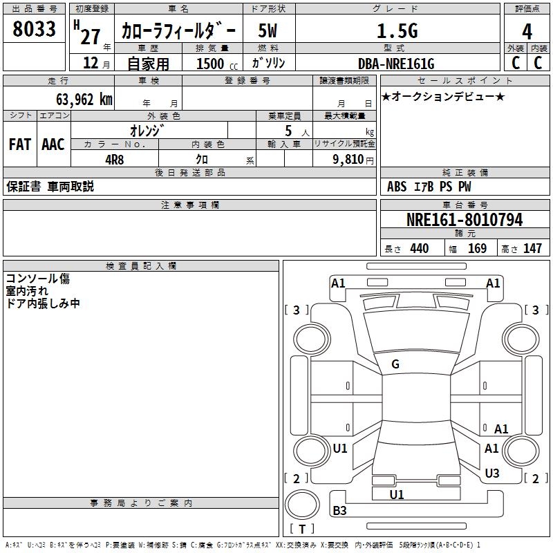 TOYOTA COROLLA FIELDER - лот 8033