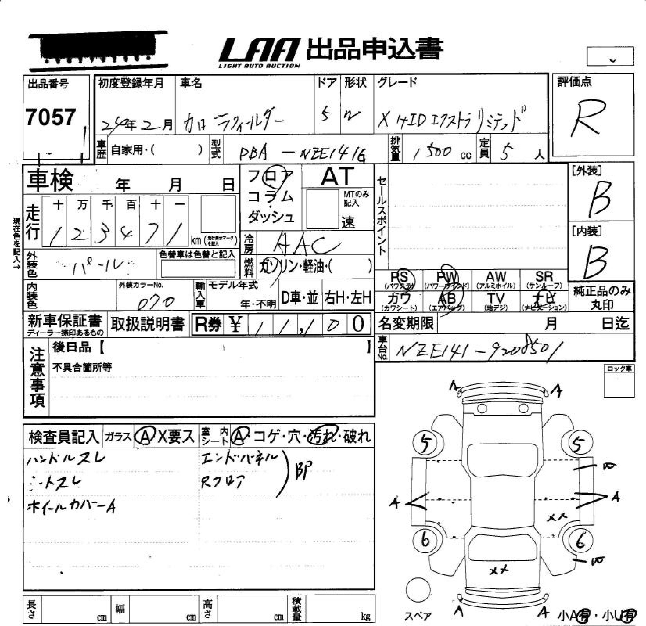 TOYOTA COROLLA FIELDER - лот 7057