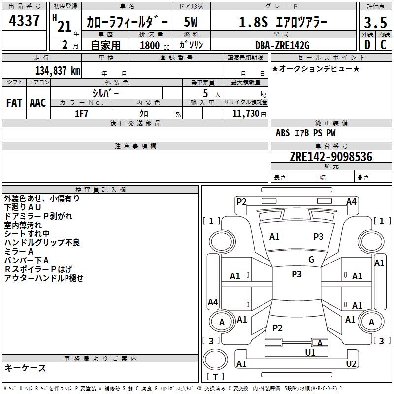 TOYOTA COROLLA FIELDER - лот 4337