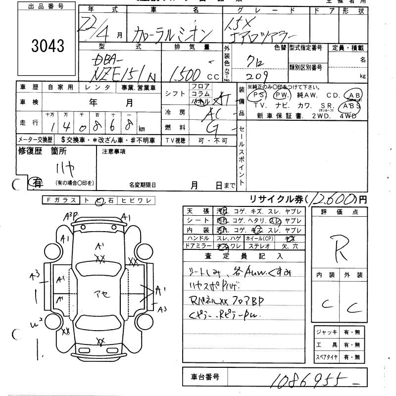 Все аукционы TOYOTA COROLLA RUMION