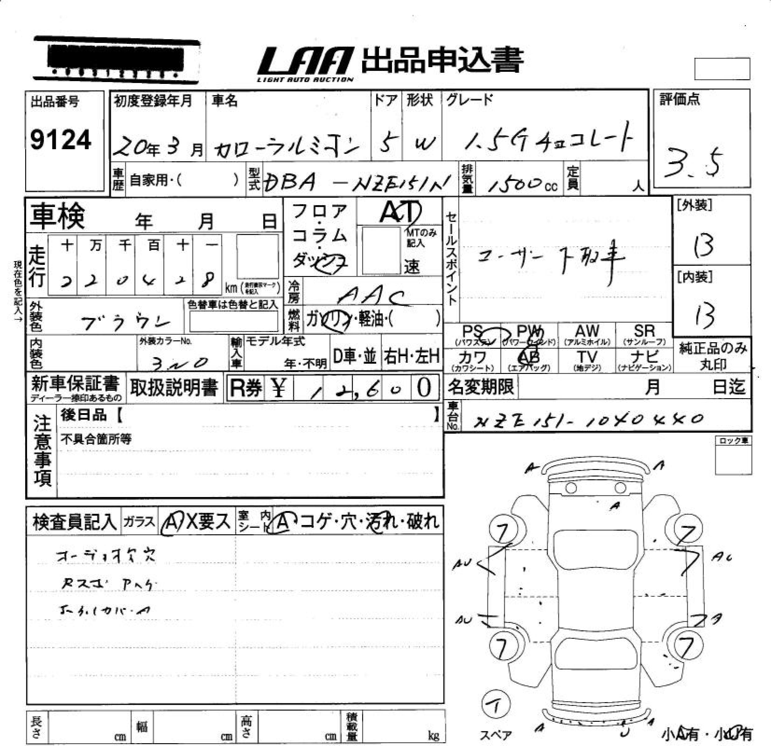TOYOTA COROLLA RUMION 1.5G CHOCOLATE RE-TO - лот 9124