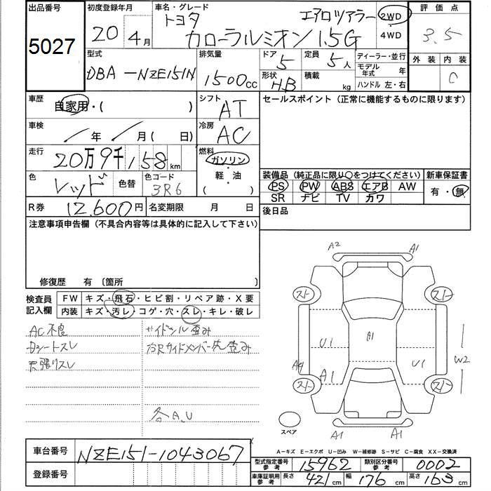 Все аукционы TOYOTA COROLLA RUMION