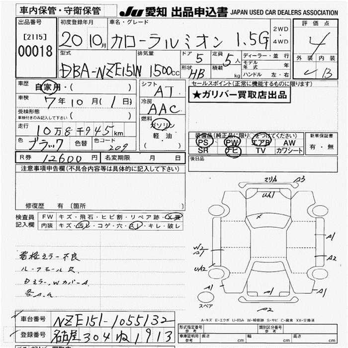 Все аукционы TOYOTA COROLLA RUMION