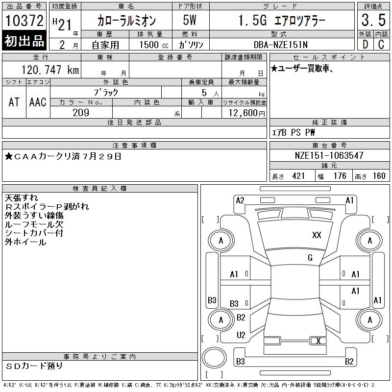 Все аукционы TOYOTA COROLLA RUMION