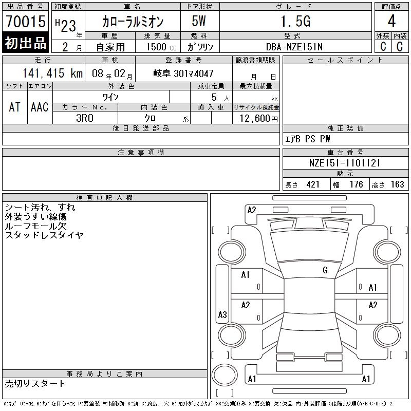 Все аукционы TOYOTA COROLLA RUMION