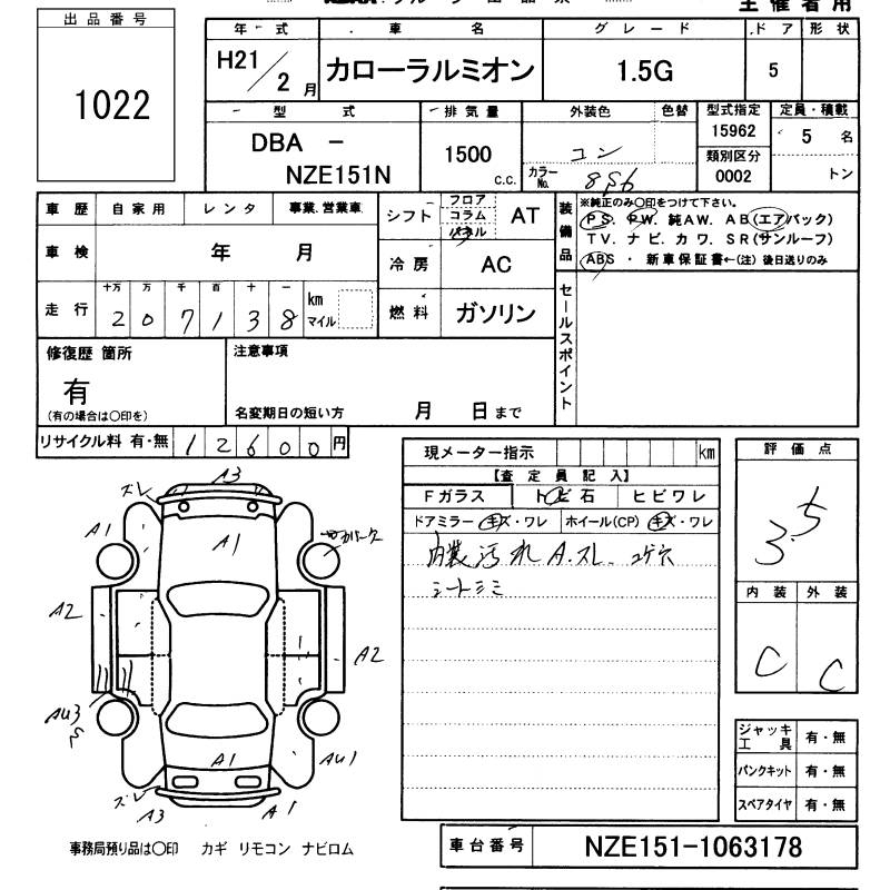 Все аукционы TOYOTA COROLLA RUMION