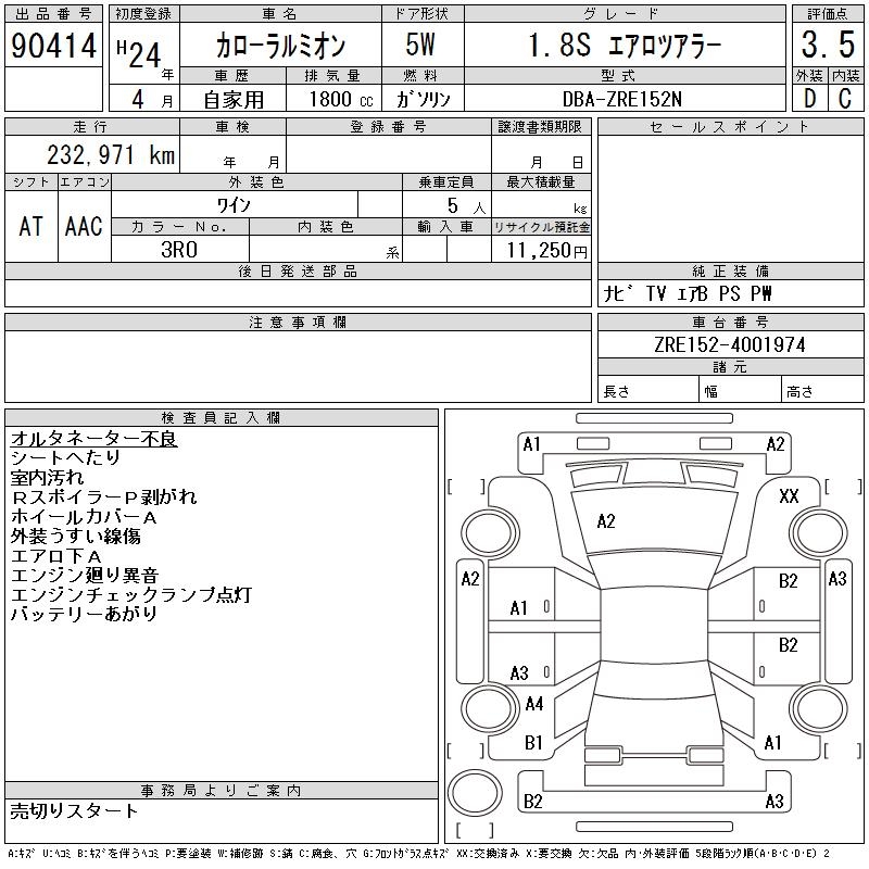 TOYOTA COROLLA RUMION 1.8S AERO TOURER - лот 90414