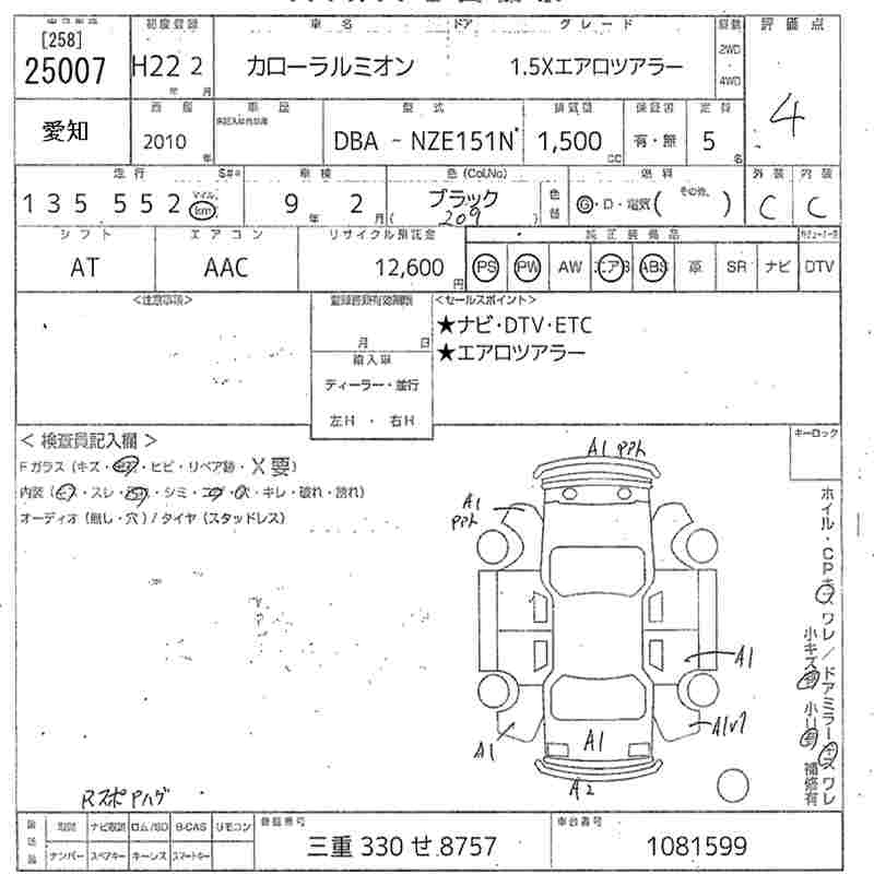 TOYOTA COROLLA RUMION 1.5X AERO TOURER - лот 25007