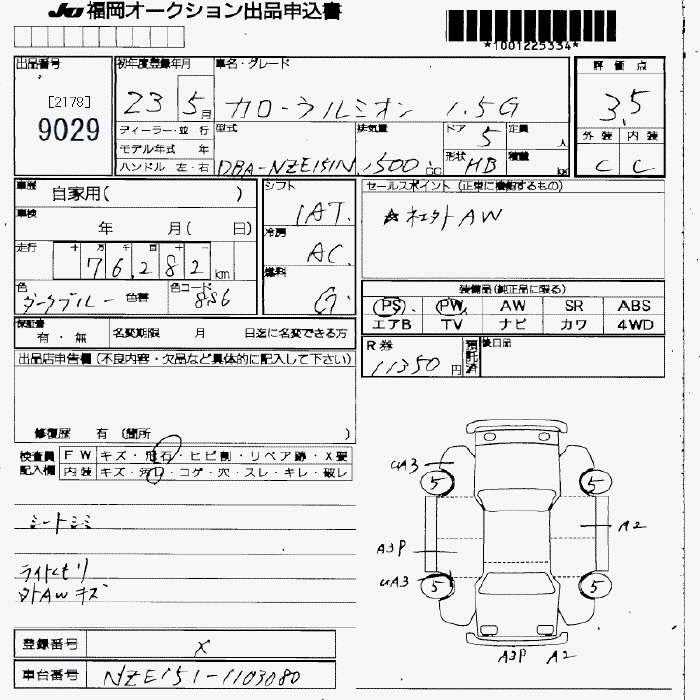 TOYOTA COROLLA RUMION - лот 9029