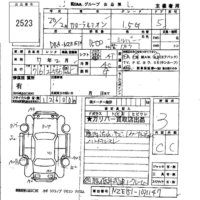 Все аукционы TOYOTA COROLLA RUMION