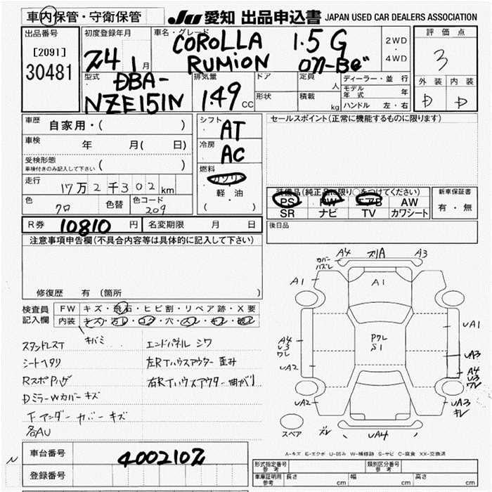 Все аукционы TOYOTA COROLLA RUMION