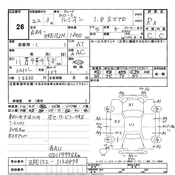 Все аукционы TOYOTA COROLLA RUMION