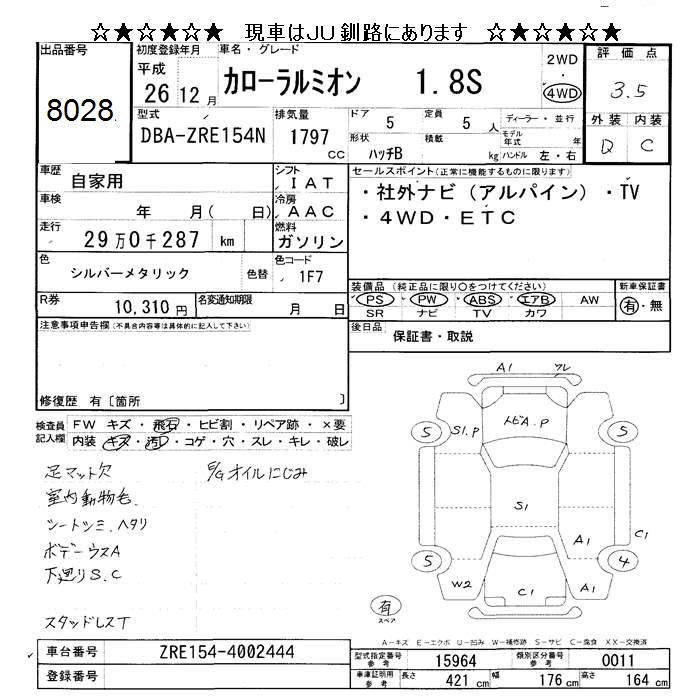 TOYOTA COROLLA RUMION 4WD 1.8S - лот 8028