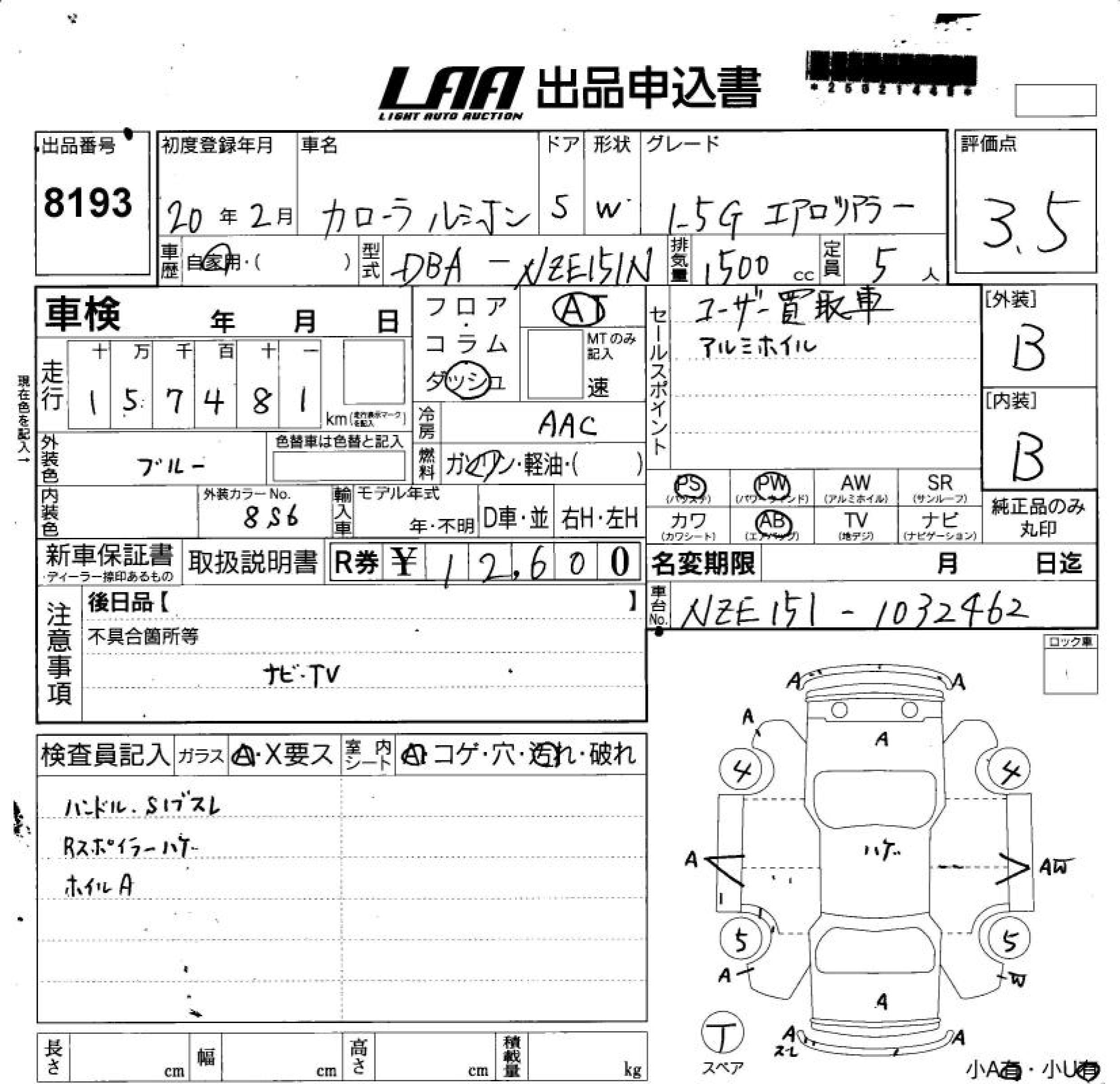 Все аукционы TOYOTA COROLLA RUMION