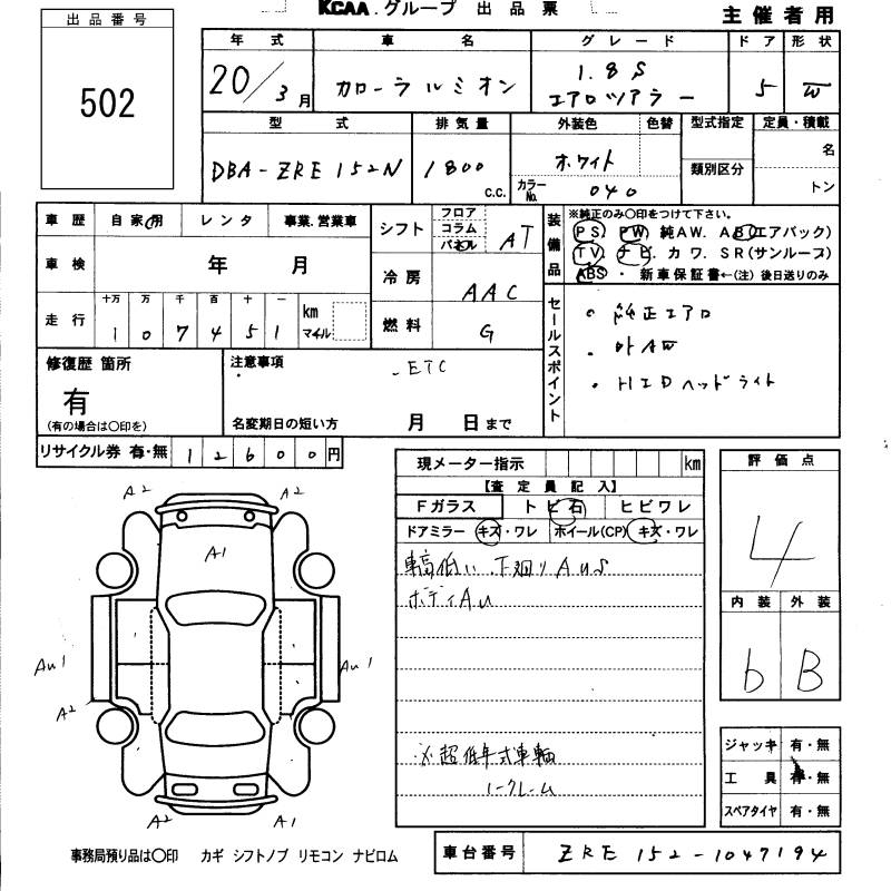 TOYOTA COROLLA RUMION 1.8S AERO TOURER - лот 502
