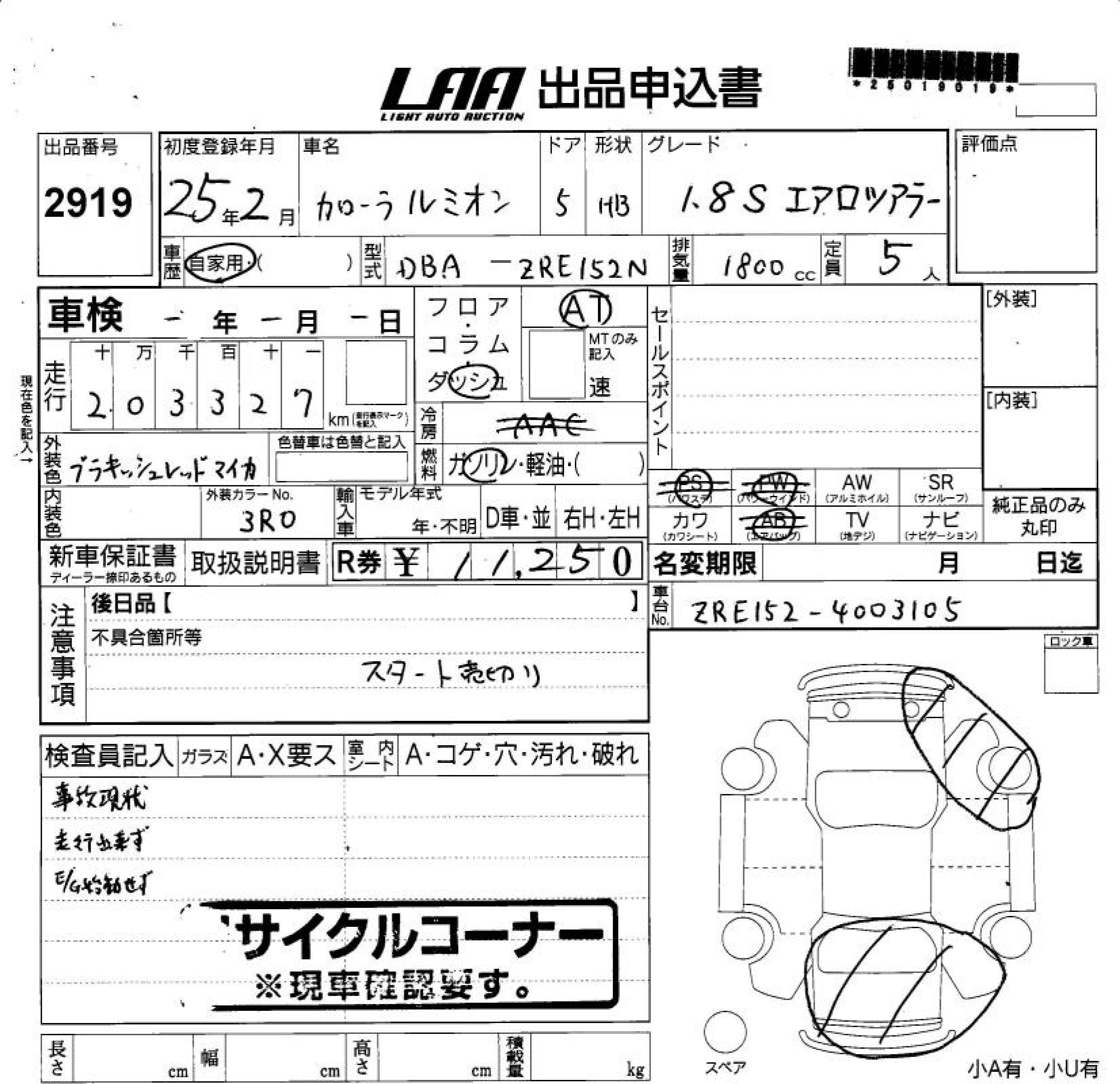 TOYOTA COROLLA RUMION 1.8S AERO TOURER - лот 2919